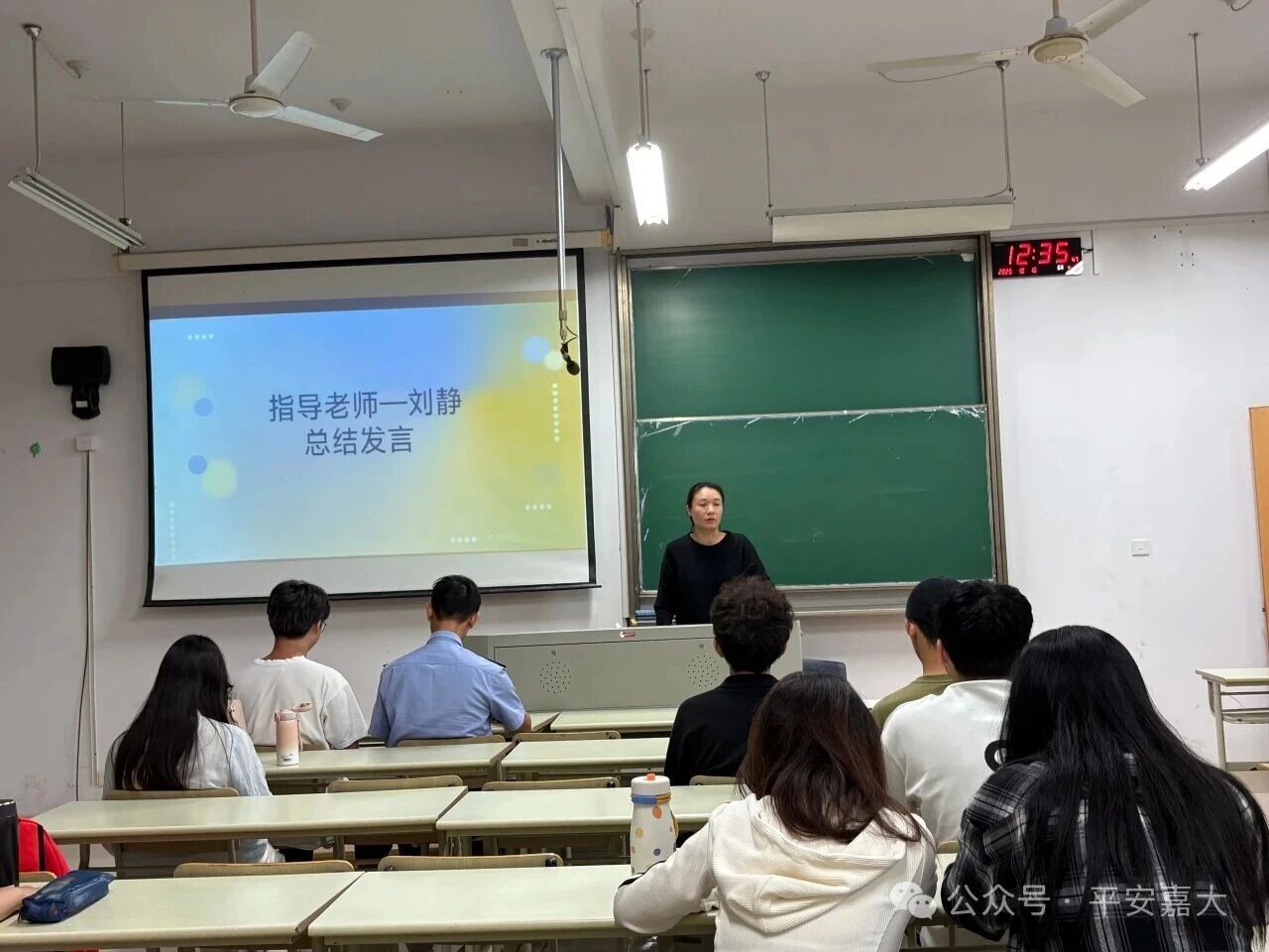 最后,指导老师刘静进行总结发言。她再次欢迎新同学的加入,对安协进行了补充介绍;同时,对安协工作内容、工作要求、工作方式进行了说明和强调;并对大家寄予厚望:“希望新成员能快速融入集体,在这里学习技能、收获友谊、承担责任。期待大家携手,共同为平安校园建设贡献自己的青春力量!” 老师的鼓励点燃了全场同学的激情。