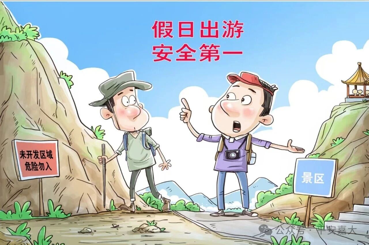 不翻越景区护栏、不进入未开放区域拍照,登山、涉水时穿防滑鞋,雨天备好雨具。乘坐缆车、玻璃栈道等设施时,严格遵守工作人员指引,不做危险动作。