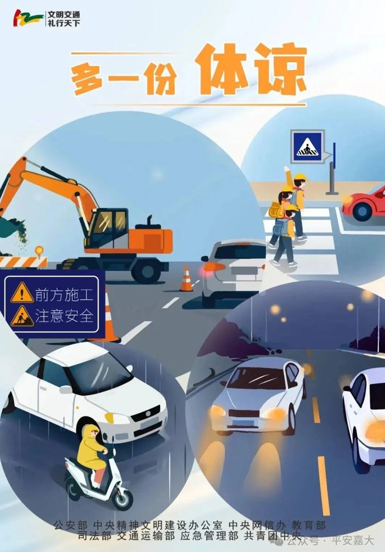 ● 不酒驾、不疲劳驾驶,雨天减速慢行