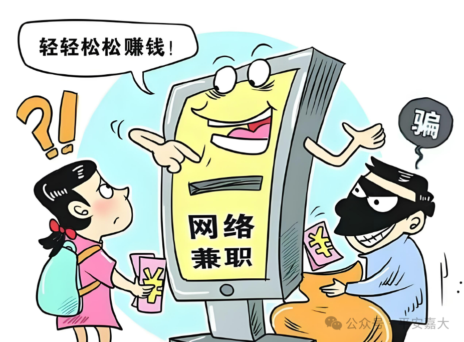 新学期伊始,不少同学想利用课余时间兼职赚零花钱,骗子正是抓住这一心理,在社交平台、兼职群发布“线上刷单、日入几百”“零投入、无风险、日结佣金”的虚假信息。初期会让同学完成小额任务并及时返还本金+佣金,获取信任后,便以“任务未完成”“系统冻结”“需垫资做大单”为由,诱导同学投入大额资金,最终拒绝返款并拉黑账号,甚至有同学被诱导开放手机远程权限,沦为电诈“工具人”,面临法律风险。